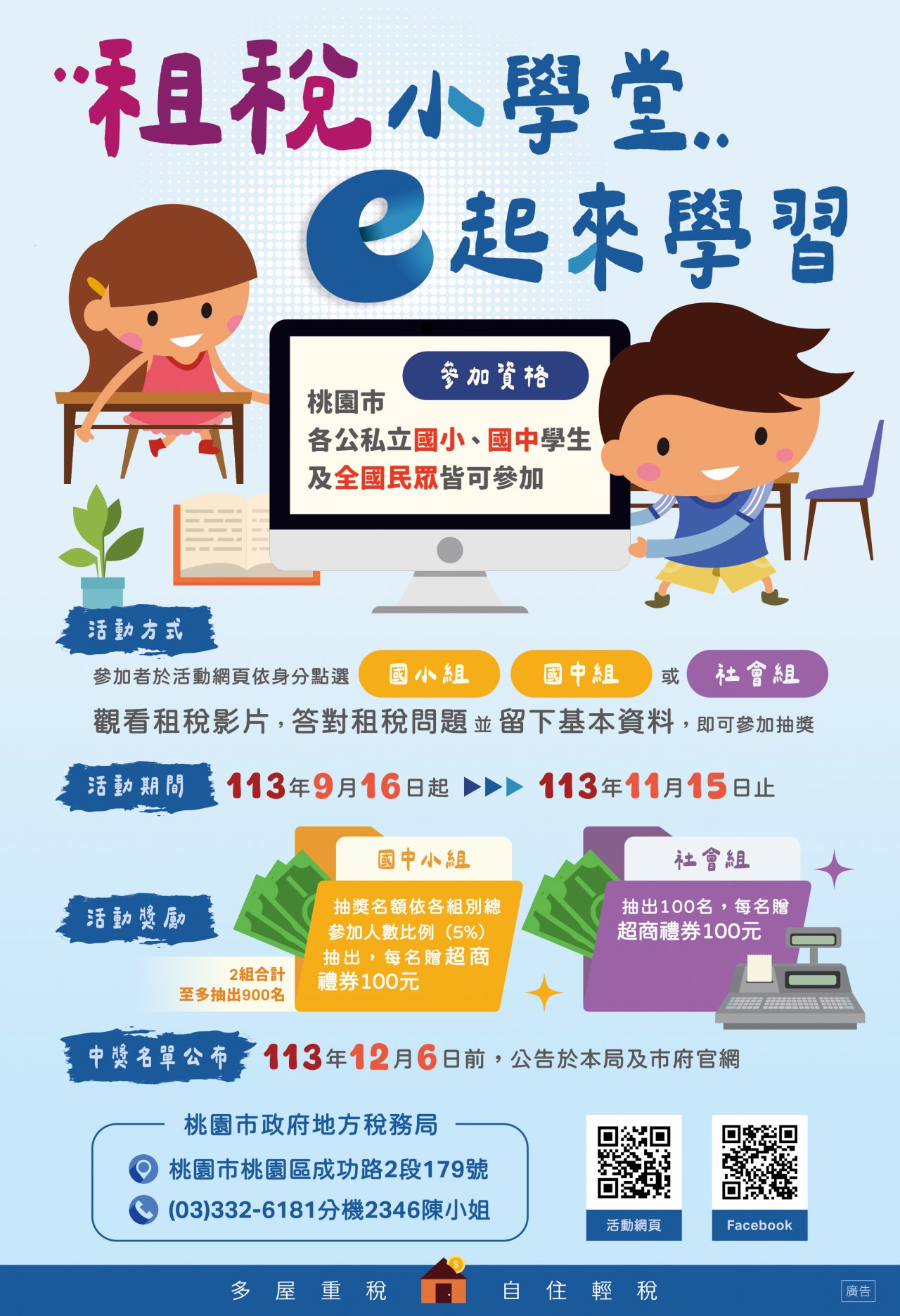 | (三) | 活動方式:參加者依據身分別點選「國小組」、「國中組」或「社會組」,於活動頁面觀看租稅影片後,正確回答租稅問題並留下基本資料者,即可參加抽獎。 |