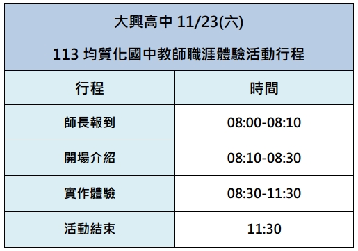 二、辦理時間:113年11月23日(六)08:30~11:30,共3小時。