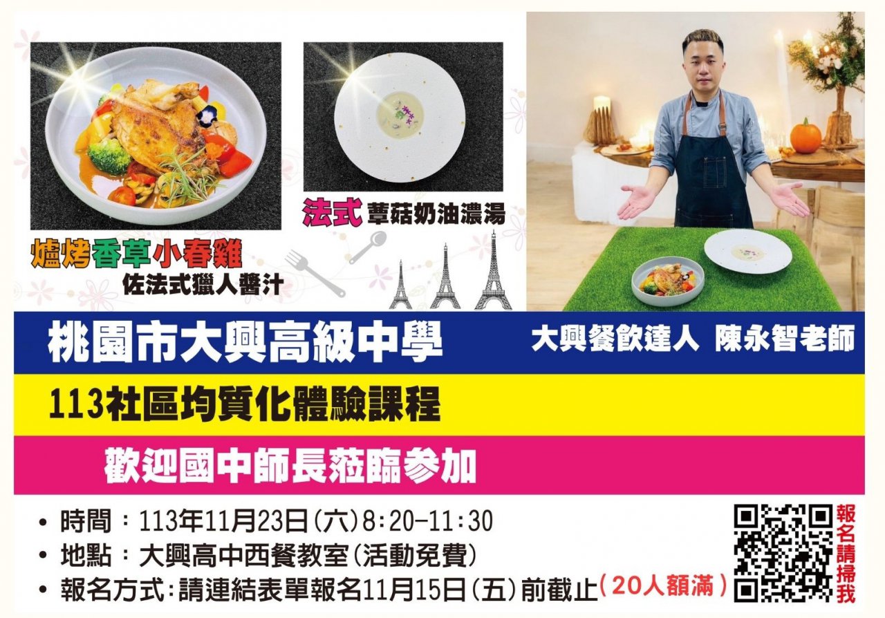 四、地點:大興高中機艙教室、西餐教室,桃園市大園區永興路142號。