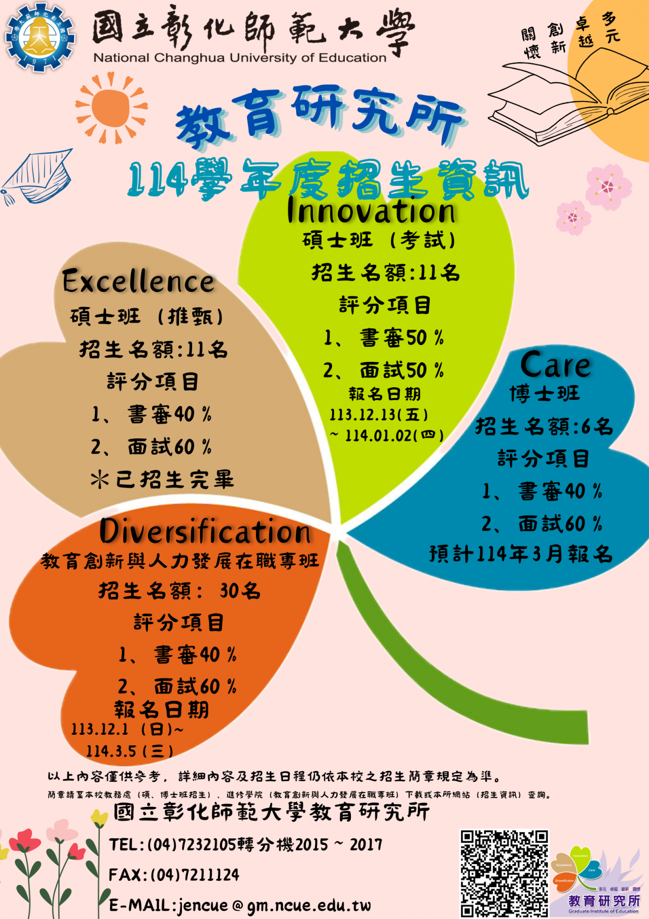轉知-國立彰化師範大學教育研究所114學年度碩士班招生