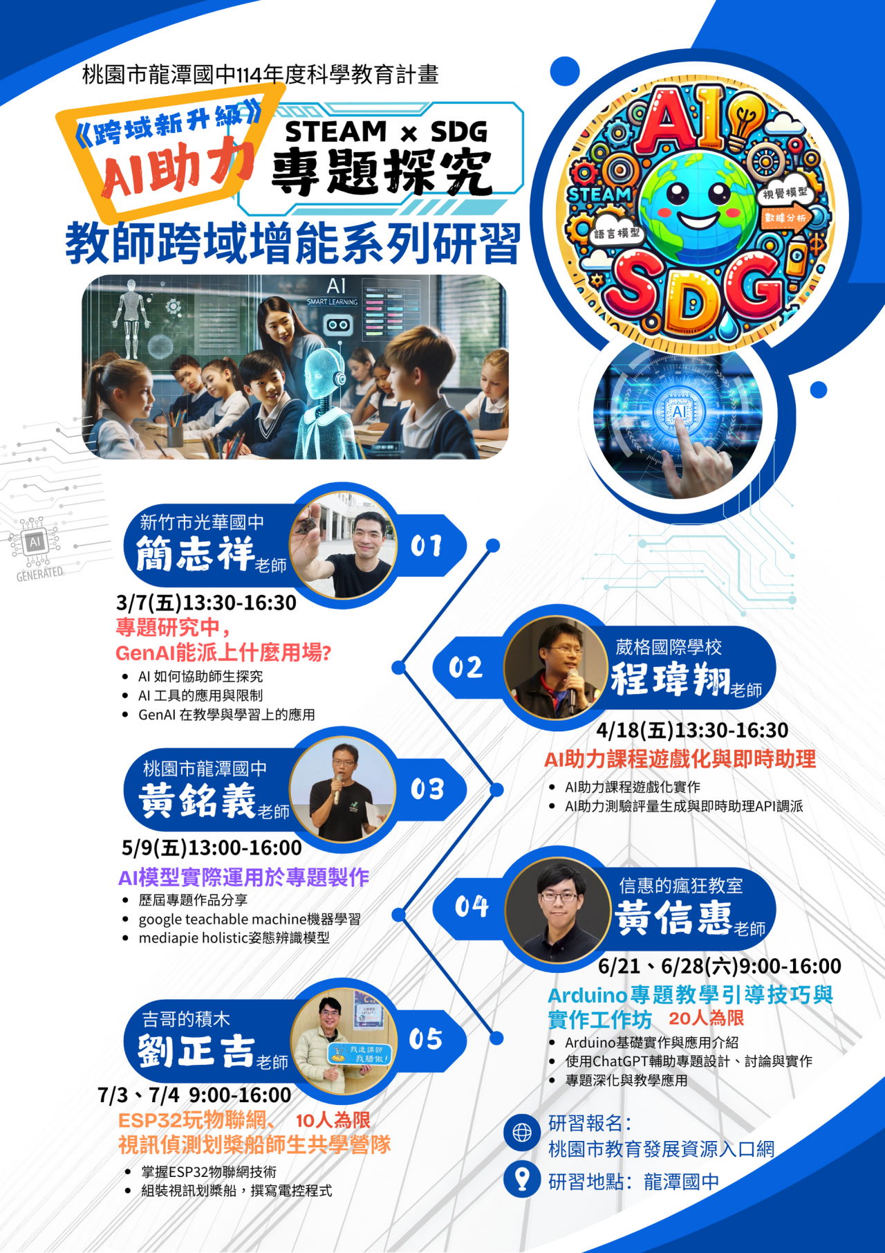 | 六、 | 請至桃園市教育發展資源入口網(https://drp.tyc.edu.tw/ )報名。(主辦單位:龍潭國中) |