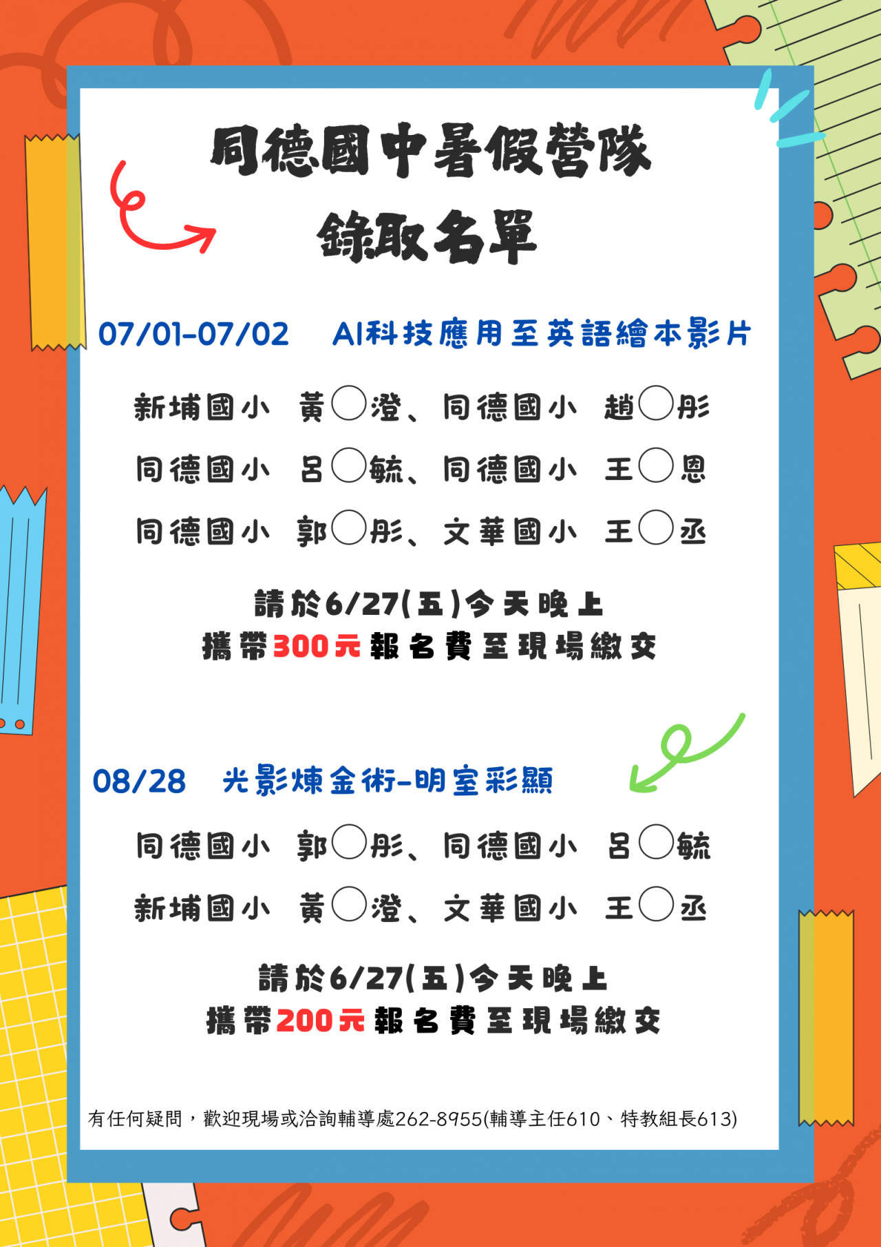 同德國中資優班新生看過來~營隊錄取名單出爐囉