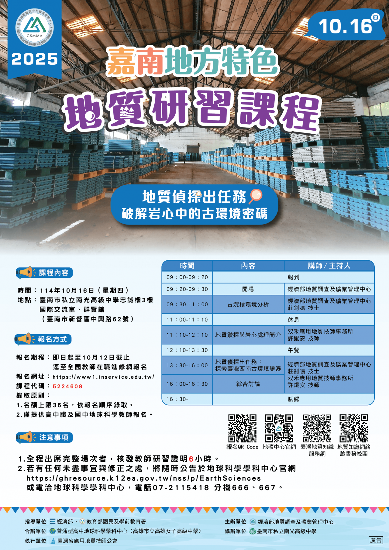 | 2、 | 僅提供高中職及國中地球科學教師報名。 |