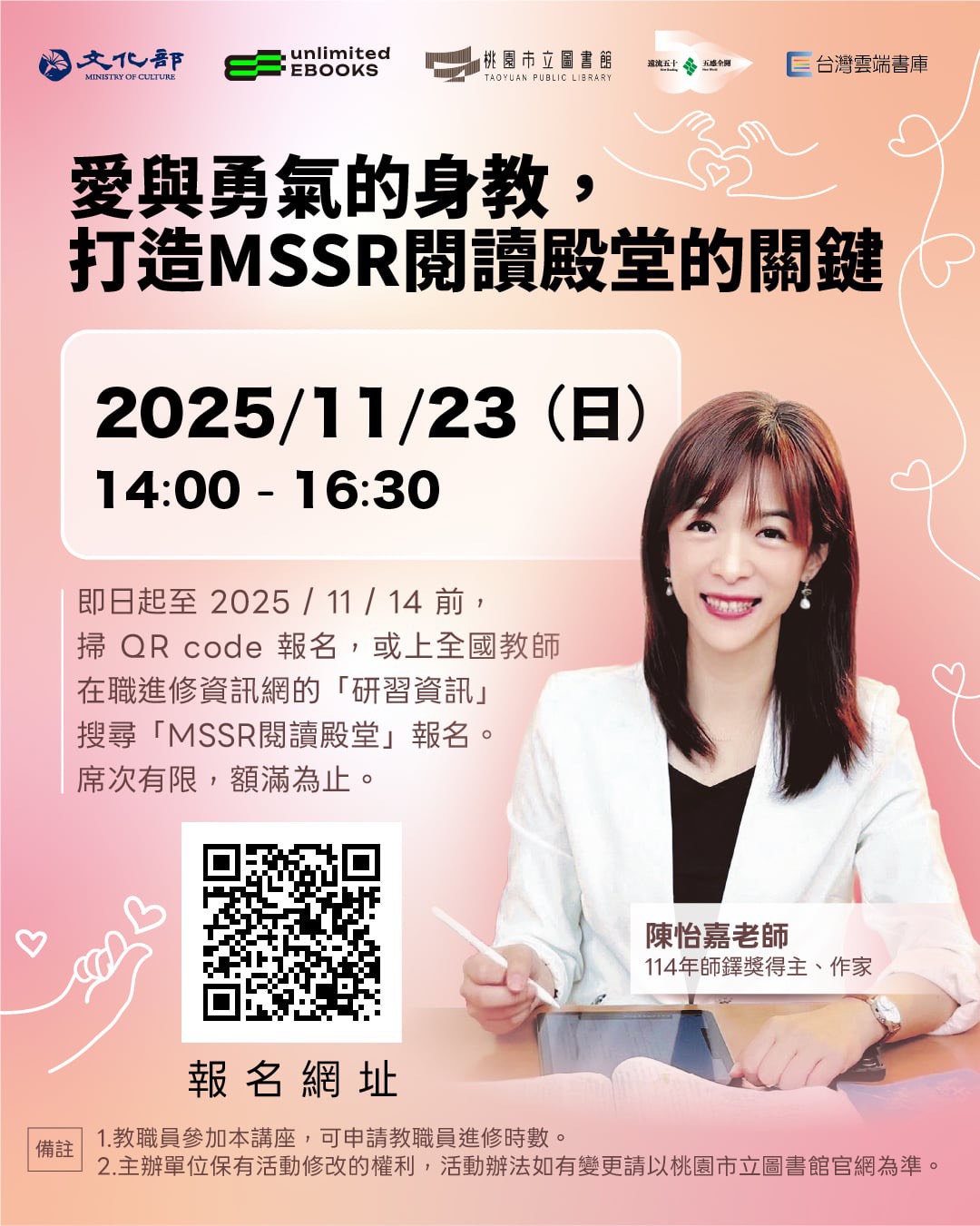 | (三) | 講題:愛與勇氣的身教,打造MSSR閱讀殿堂的關鍵 |