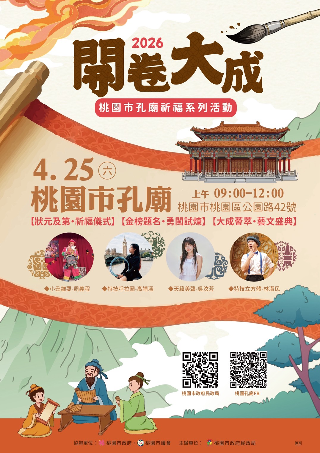 (三) 活動地點:桃園市孔廟大成殿前廣場(桃園市桃園區公園路42號)。